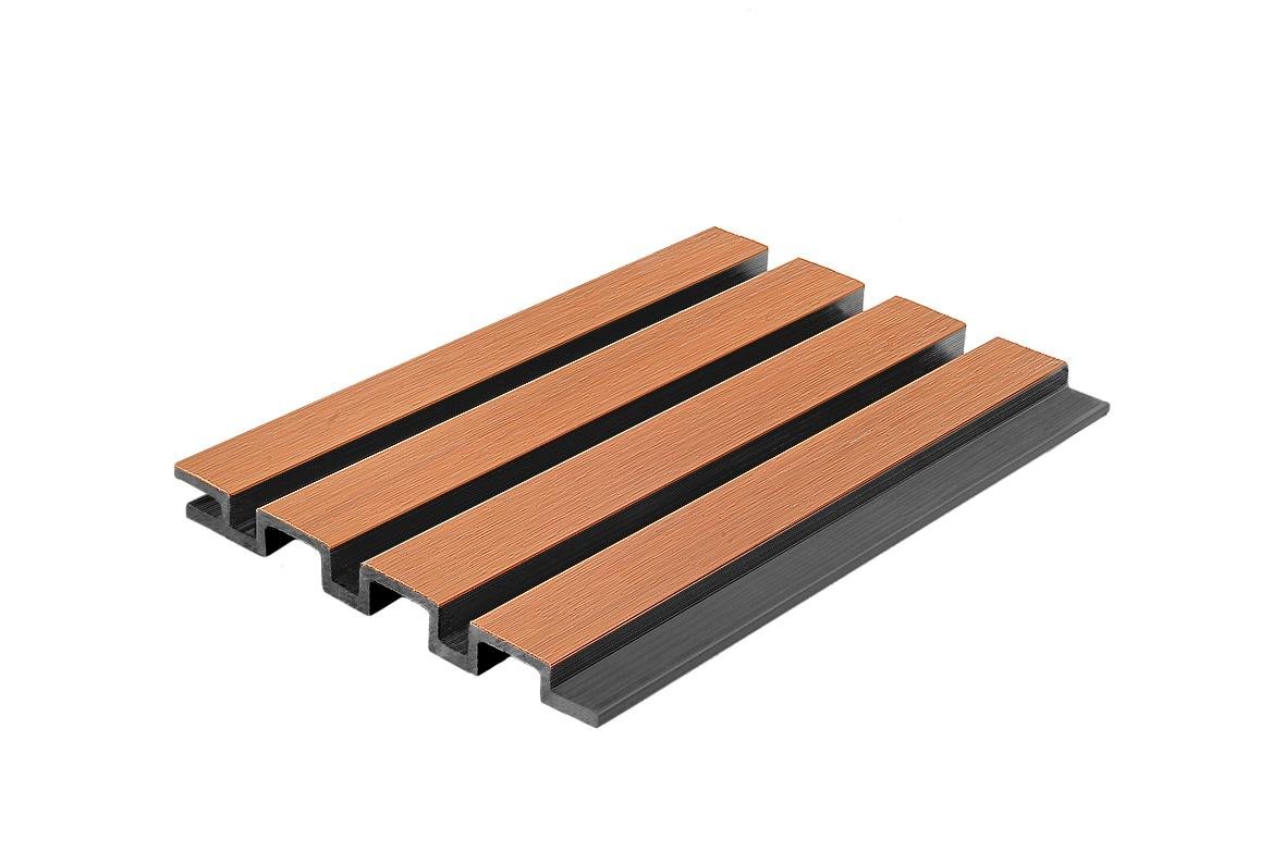 WPC wall cladding, stands for wood plastic composite cladding, sometimes referred to as composite exterior wall cladding, exterior wall panels, WPC facade cladding, also called eco-friendly composite wall panels, WPC wall boards, or WPC slatted cladding, is a decoration used on the outdoor wall of a building (such as a patio) to beautify and protect it. WPC wall panel is more attractive than traditional exterior cladding because of its eco-friendly features and beautiful appearance.